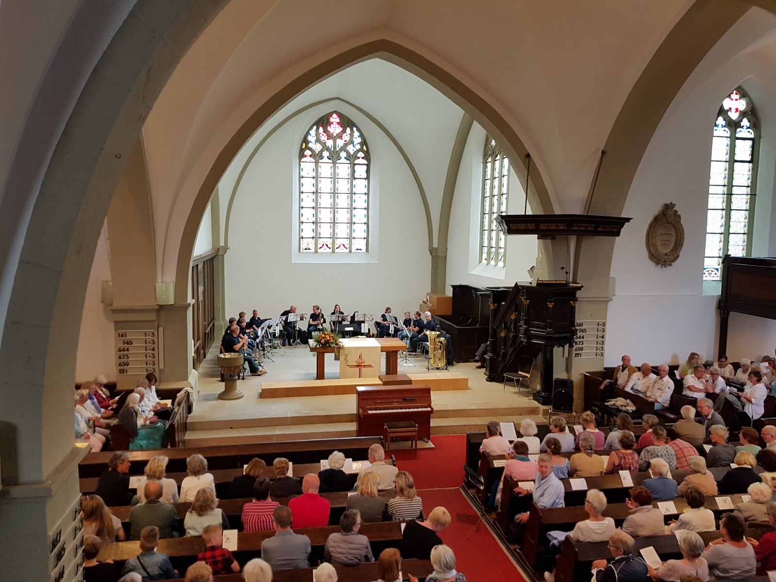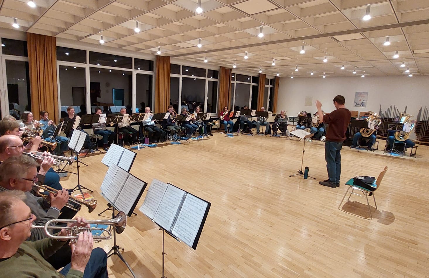 Hier ein kleiner Einblick in unseren Probenraum im Gemeindehaus in der Talstraße. Es ist ausreichend Platz mit Abständen für bis zu 30 Bläsern.